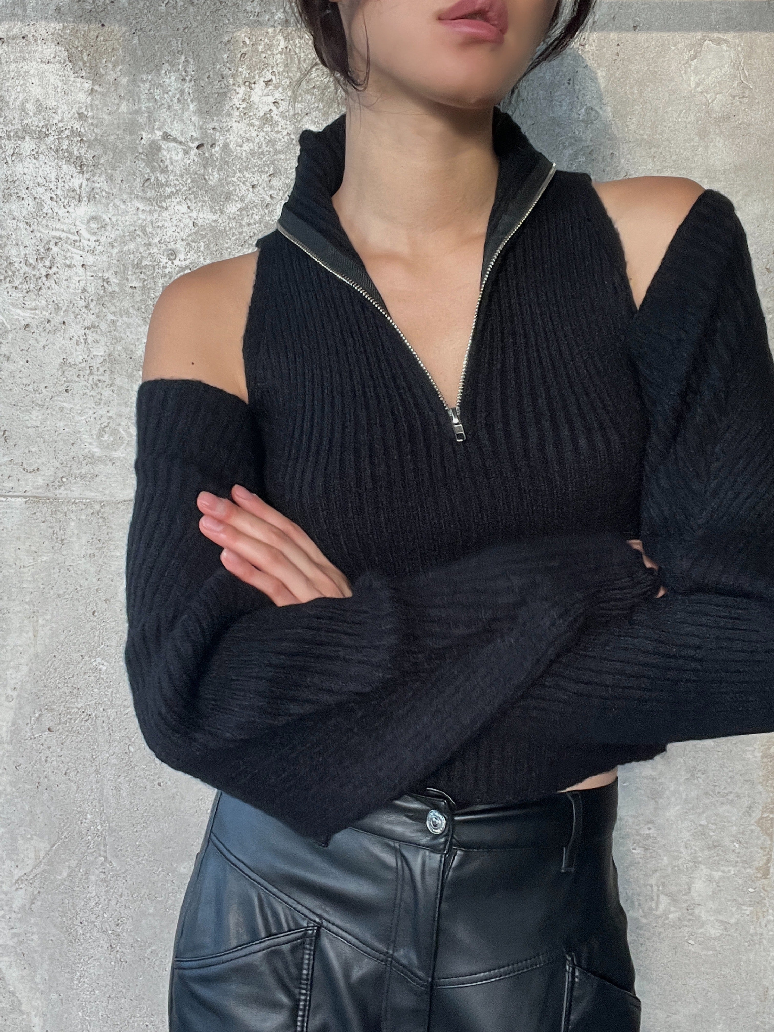 The Cloud Knit Set comes with sleeveless front zip knit top and a bolero cardigan. Match this set with any bottoms to create cozy and stylish look. You will never find any set this versatile, just throw the bolero cardigan separately on your date night dress, GNO top to feel warm and cute. Bolero cardigans thrived in the 90's and we are bringing them back this fall/winter to add some flare to our outfits.