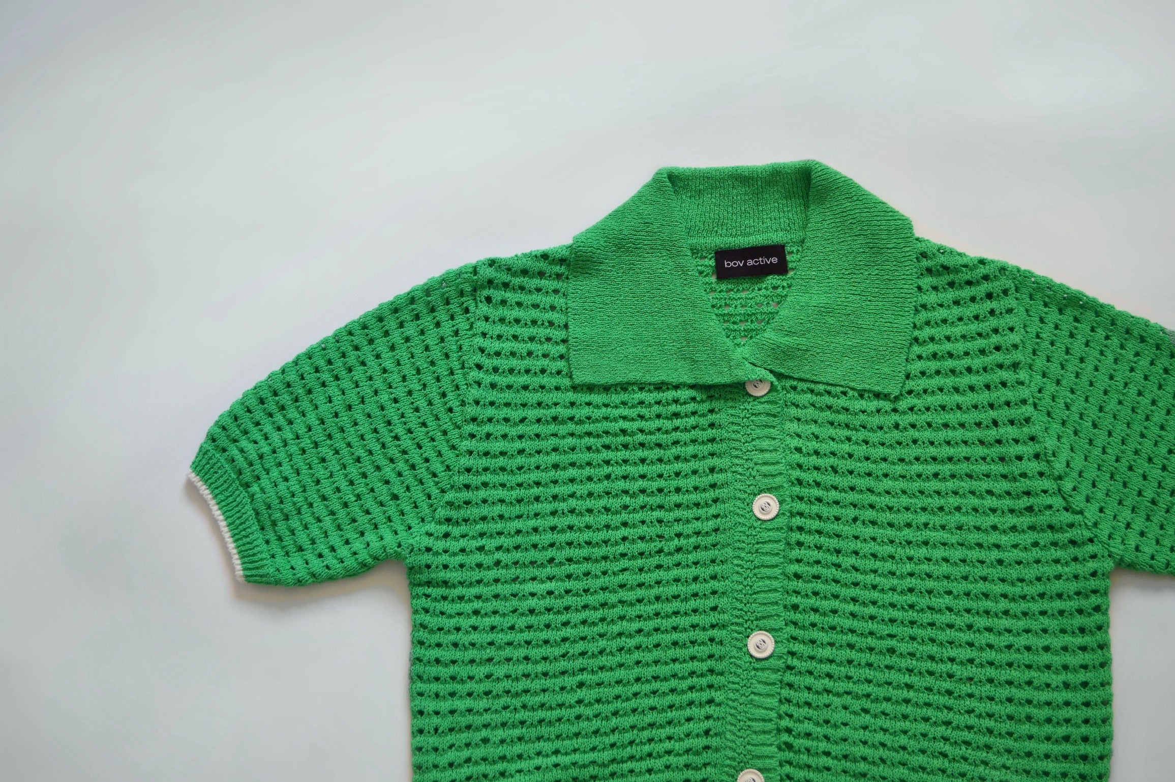 This Collar Crochet Cardi is perfect for the summer! It features in a mixed fabric of linen and cotton which provides cooling feel and a colour contrast in the bottom, sleeves and also buttons. Wear this with our pleated skirts or over a bikini for a beach to restaurant outfit.