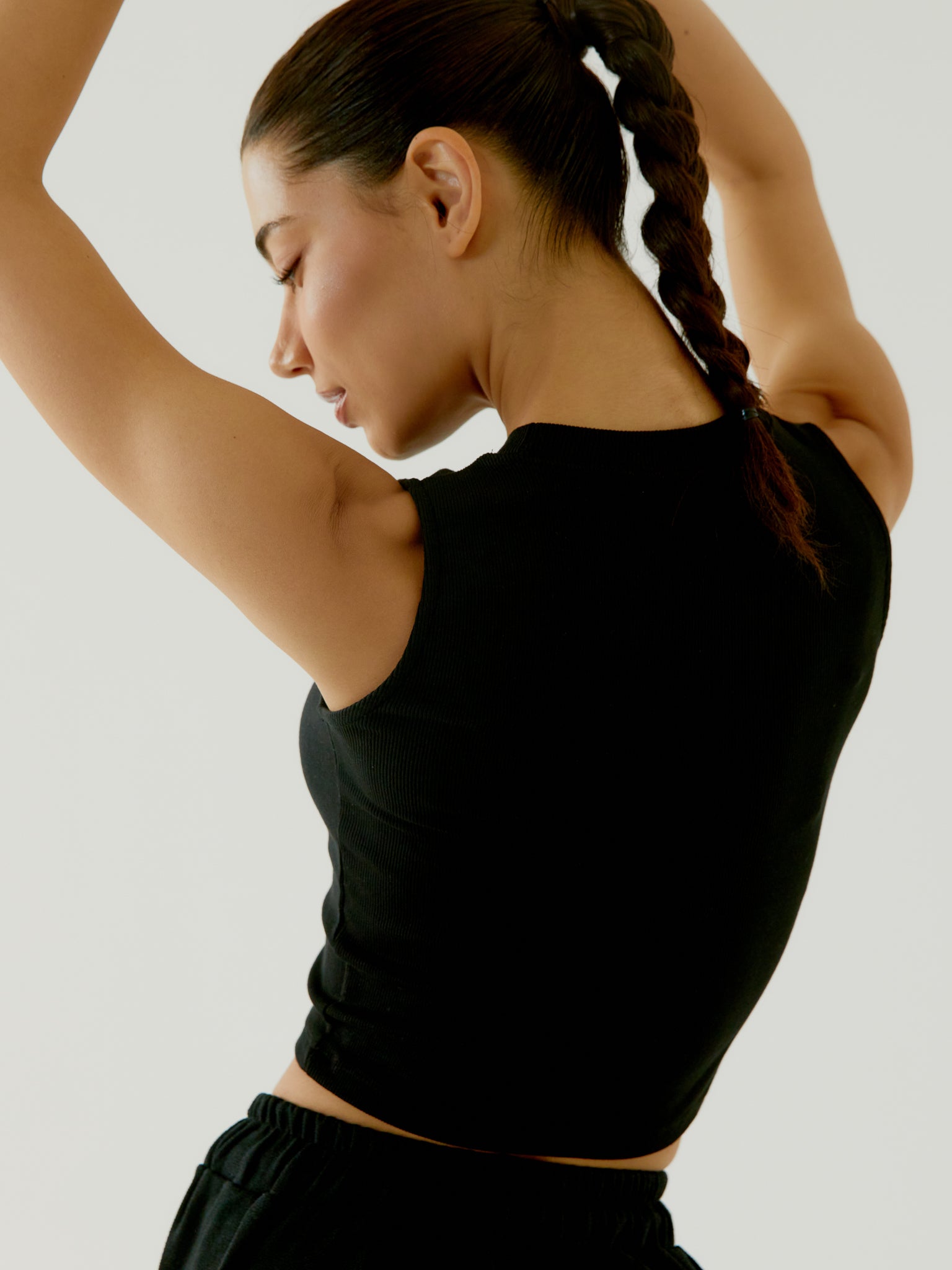This black Jersey Tank is made from airy and breezy cotton, making it a perfect choice for everyday comfort and sporty versatility. Enjoy effortless movement through any activity with this comfortable and stylish piece.
