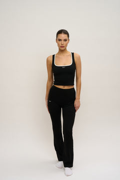 The Maeve Tank in black is a must-have for any wardrobe. Its versatile black color pairs well with any outfit, while the white lining adds a touch of elegance. Made with comfortable and flattering fabric, this tank is perfect for any event. Get yours now for a timeless and effortless look.