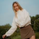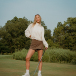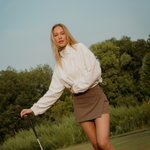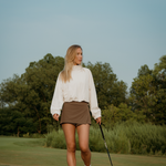 The Mia Skort in brown blends performance and style seamlessly from the golf course to everyday life.
