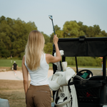 A discreet back pocket with a yellow-gold zipper securely holds your essentials like balls, tees, keys, and phone.