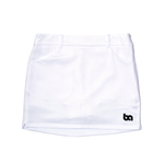 Enhance your golf skills with our top-of-the-line golf ensemble - the H line skirt + Polo shirt. The timeless, pristine, and effortless appearance of all white is a staple. This stylish pairing is ideal for female golf experts who desire a clean and refined aesthetic on the links. The skirt comes with belt loops, built-in shorts, pockets, and a D ring, while the 100% cotton polo shirt offers exceptional breathability.