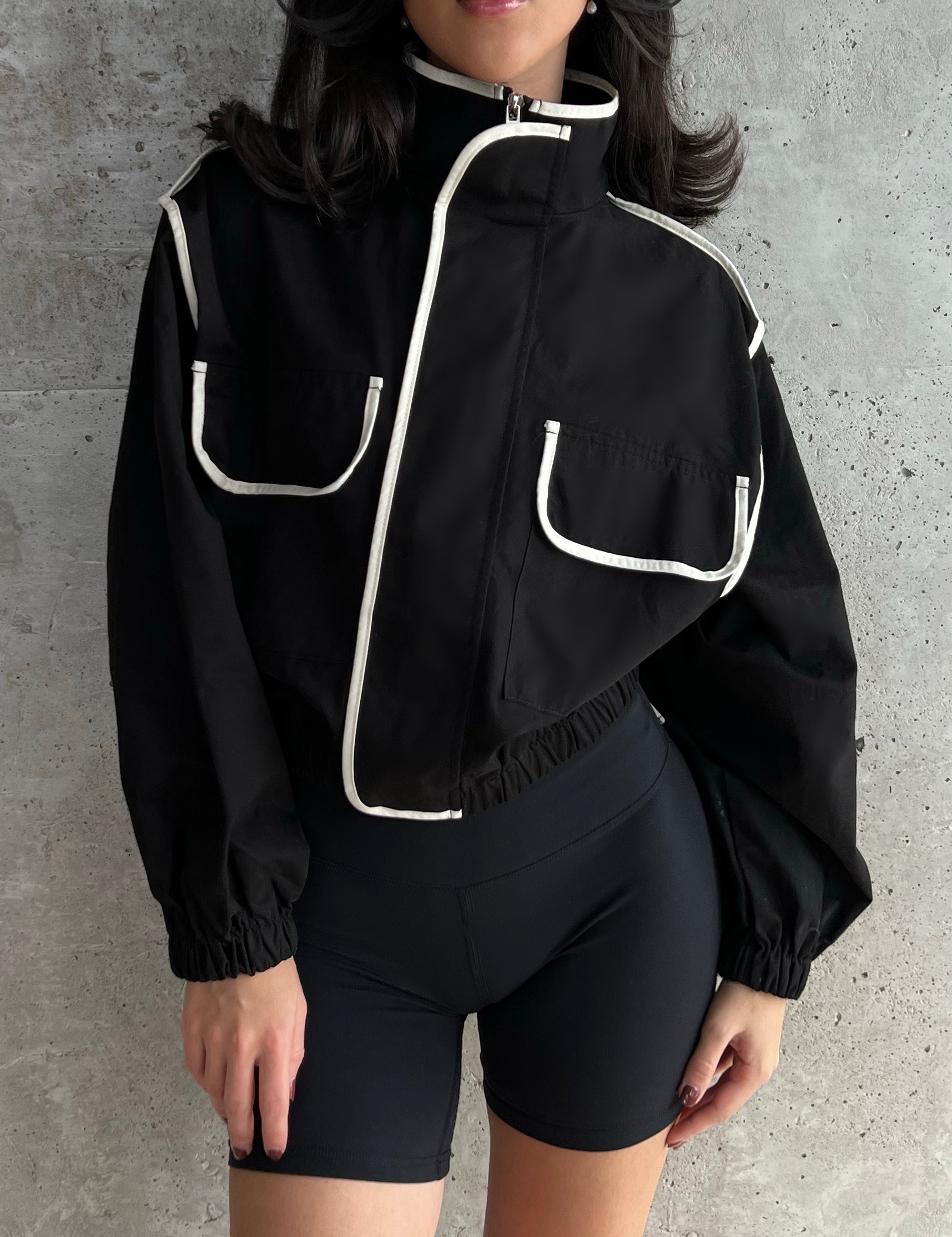 Cropped Cotton Jacket - Black