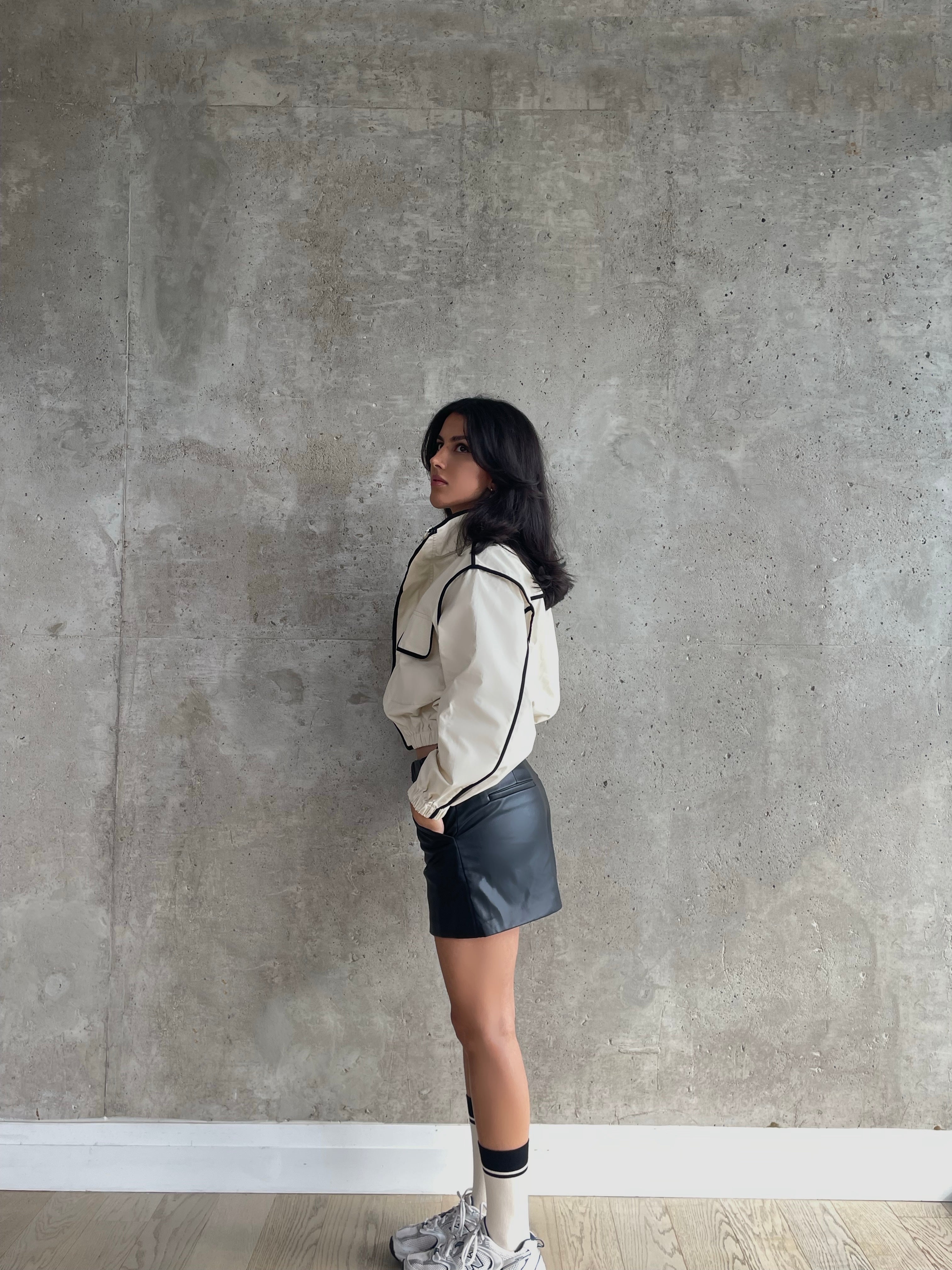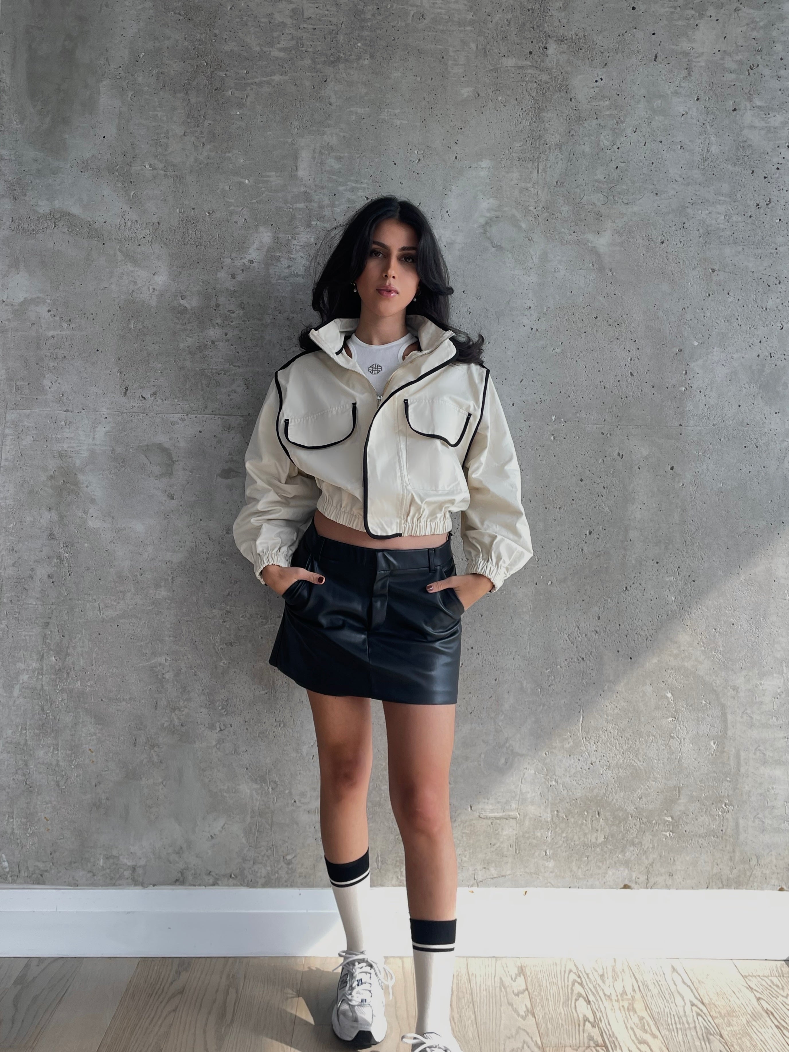 The Cropped Cotton Jacket is perfect for completing your sporty athleisure look.  Sizing fits the best for women who are 5'6 or less.