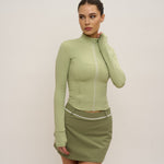 Effortlessly elevate your wardrobe with our Maeve Sculpting Jacket in Pistachio. Designed to snatch your figure, this jacket features thumbholes, invisible zippered pockets, and versatile styling options. Perfect for any occasion, and pairs effortlessly with other pieces in your wardrobe. Expertly crafted for the ultimate fit and style.